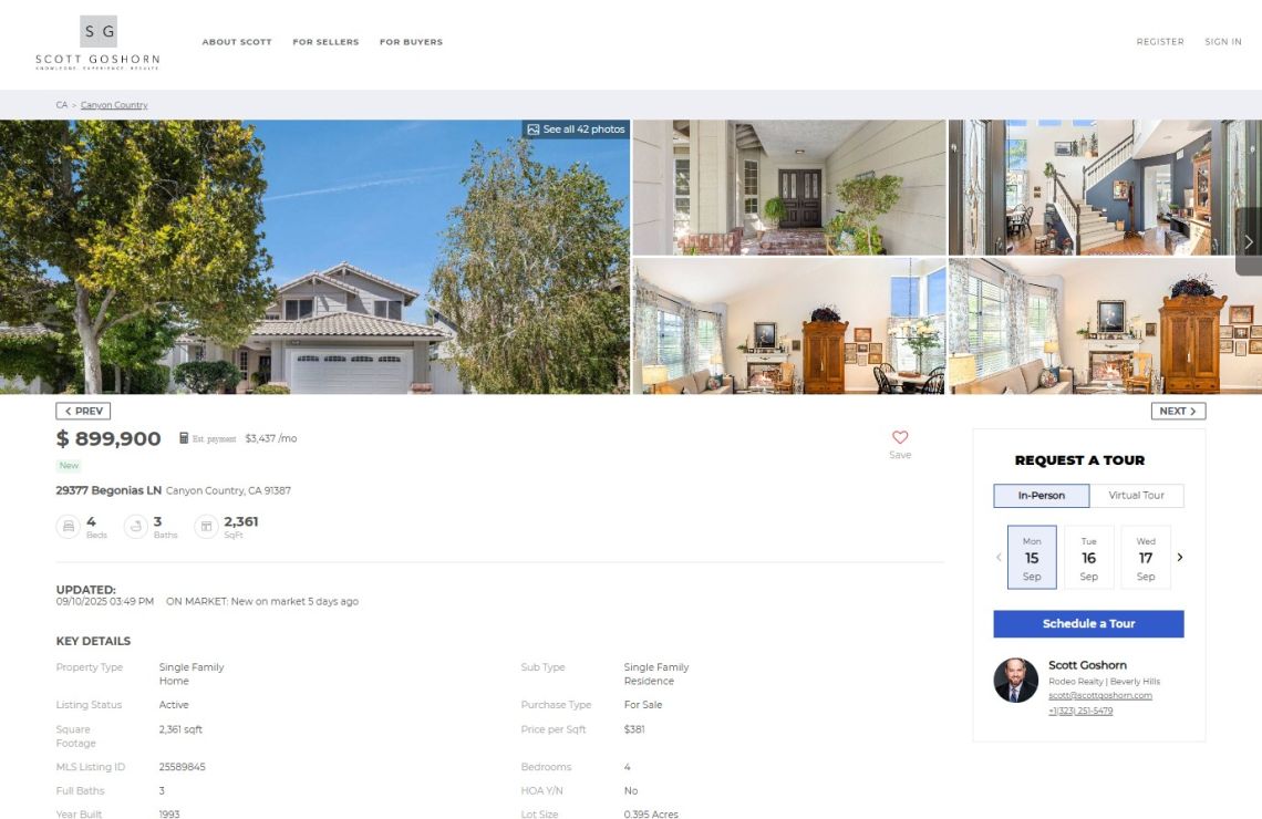 1434 Page views (all platforms: scottgoshorn.com, Zillow for last 30 days, Realtor.com, Luxuryrealtor.com, Point2Homes, Nextdoor)
